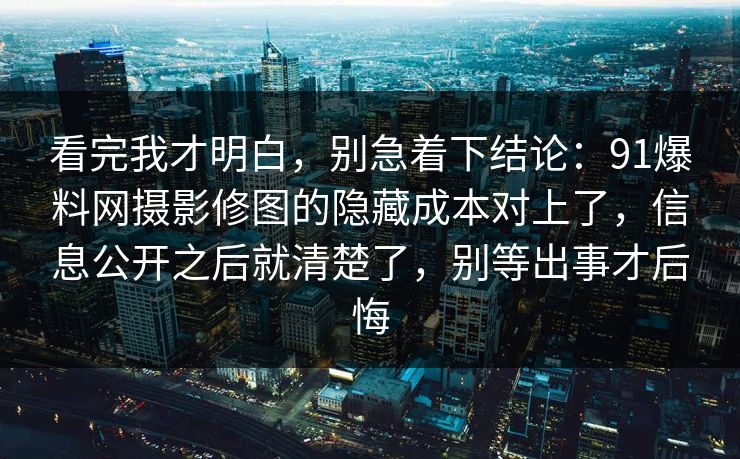 看完我才明白,别急着下结论:91爆料网摄影修图的隐藏成本对上了,信息...