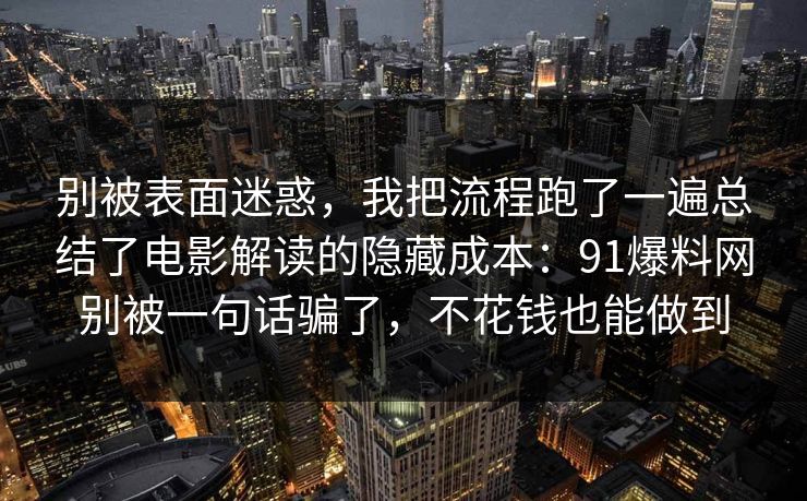 别被表面迷惑,我把流程跑了一遍总结了电影解读的隐藏成本:91爆料网别...